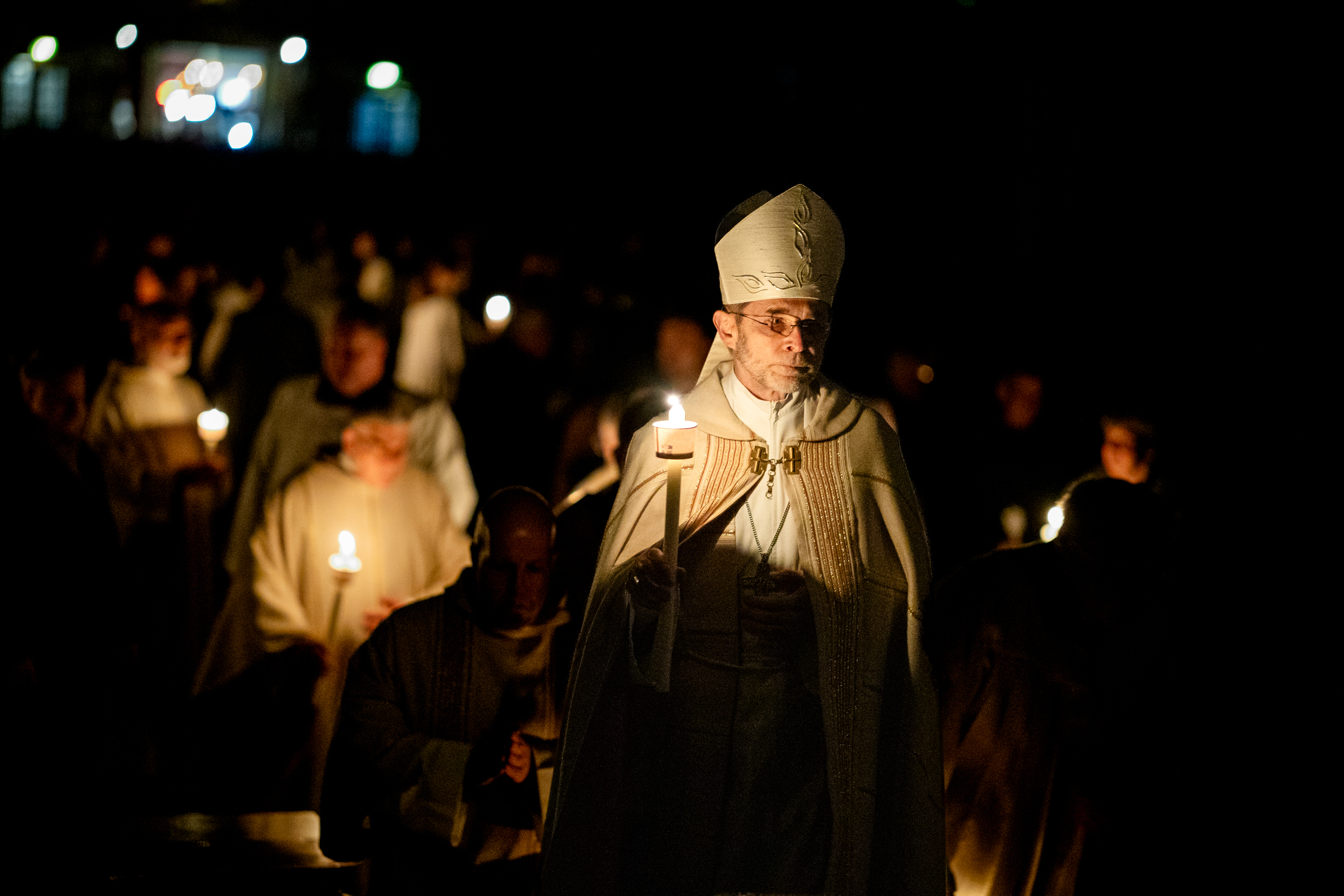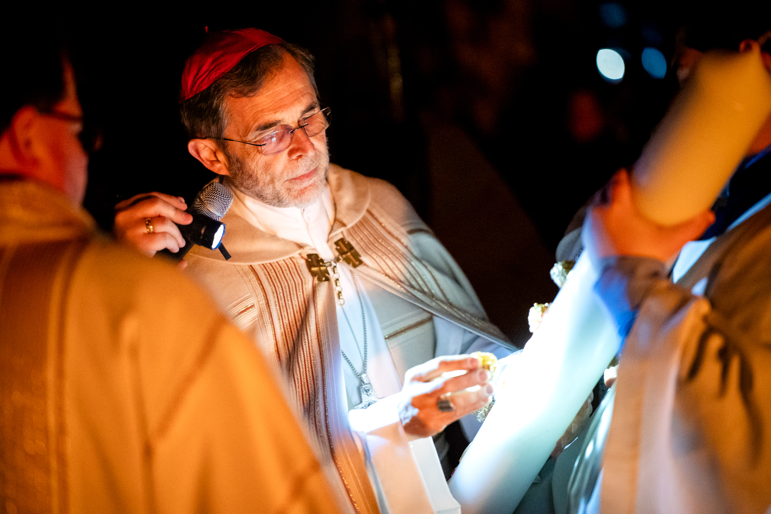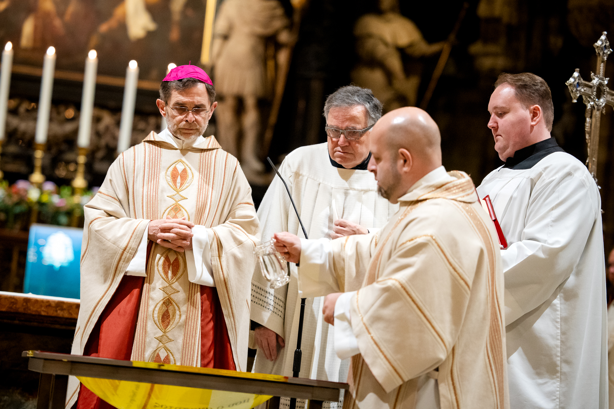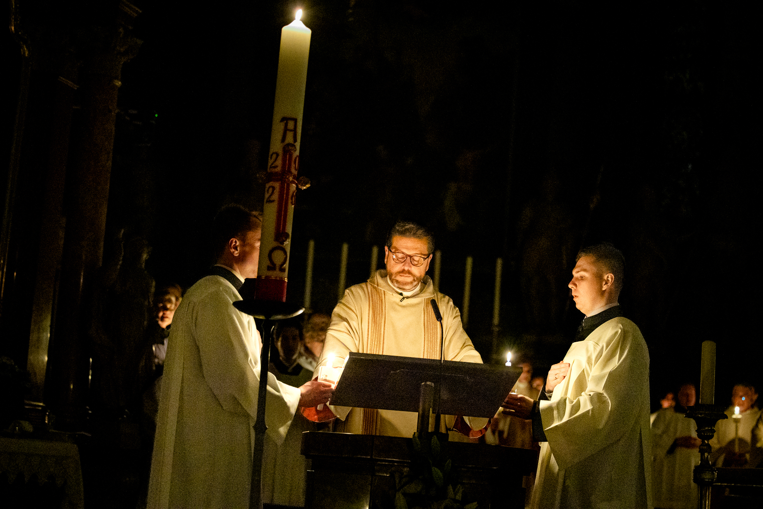 Die Osternacht ist die Feier des Lebens. Ihre Liturgie besteht aus vier Teilen – der Lichtfeier, dem Wortgottesdienst, der Tauffeier und der Eucharistiefeier. Die Lichtfeier beginnt außerhalb des Doms im Hof des Erzbischöflichen Palais. Hier wird die Osterkerze am Osterfeuer entzündet und zum Dom getragen – damit beginnt die Feier der Osternacht. Wir waren mit der Kamera dabei – unter der Leitung unseres Erzbischofs Josef Grünwidl.