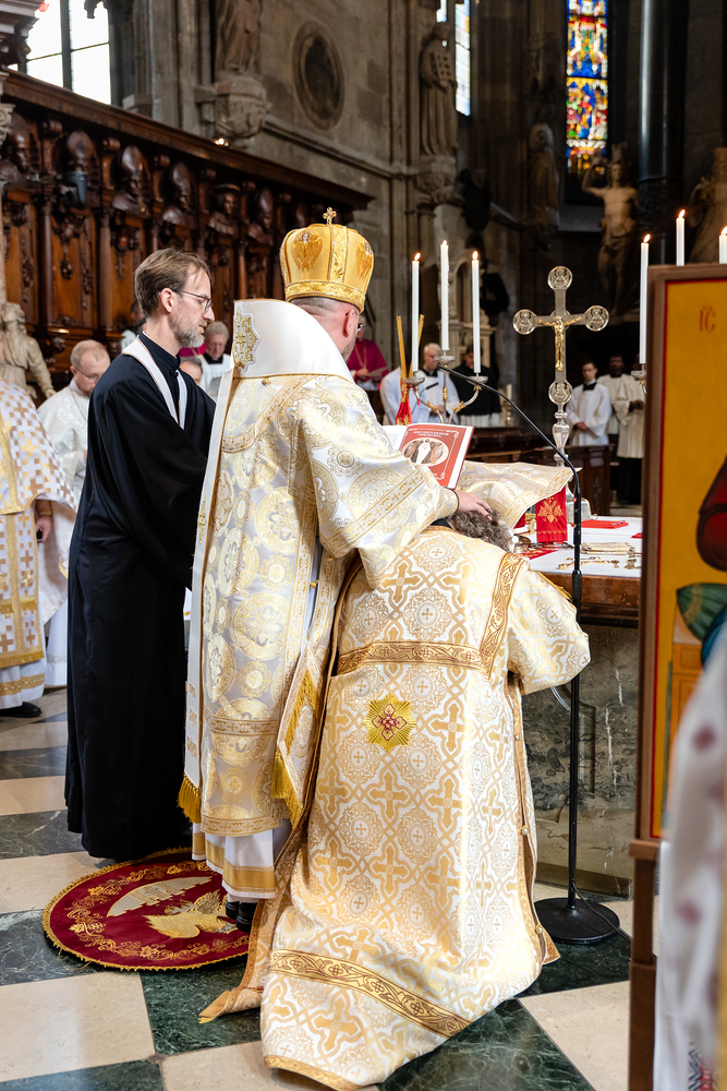 Zum ersten Mal in der Geschichte unserer Erzdiözese wurde ein Seminarist des Wiener Priesterseminars im Byzantinischen Ritus zum Priester geweiht. Bischof Stepan Sus/Kyiv spendete Siluan Gall die Weihe - eine Premiere auch in der 665 jährigen Geschichte unseres Stephansdomes. Wir waren mit der Kamera dabei.